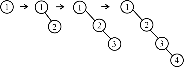 예를들어 지금까지 배운 방식대로 1 , 2, 3, 4 를 이진트리에 추가한다면 그림1 처럼 된다.