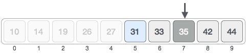 인덱스 7에대한 값은 35이고 우리가 찾고자하는 31보다 크다. 따라서 35포함하여 우측에 있는것들은 검색할 필요가 없다.