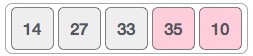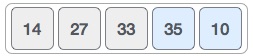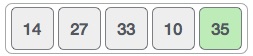 33은 35보다 작으므로 swap 할 필요가 없다. 따라서 다음 원소 numbers[3] = 35과 numbers[4] = 10 을 비교한다.