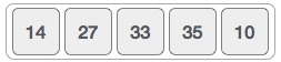첫번째 이터레이션이 모두 마치면 최종적으로 14, 27, 33, 10, 35로 되어 있고 이터레이션이 끝나면 하나씩(여기서는 35가 맨 끝으로 이동됨) 정렬된다. 위와 같은 이터레이션을 데이터의 개수만큼 반복하면 최종적으로 오름차순 정렬이 완료된다.