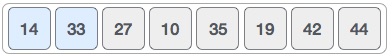 int array[] = {14, 33, 27, 10, 35, 19, 42, 44};