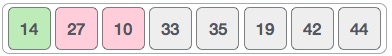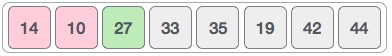 27은 14보다 크므로 정렬된 서브리스트내에 스왑은 불필요하다.
