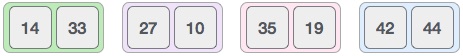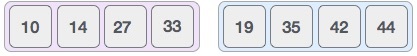 14와 33을 병합한 결과는 이미 정렬 상태라 다음 27과 10을 비교해 본다.