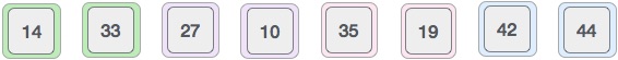 int array[] = {14, 33, 27, 10, 35, 19, 42, 44};